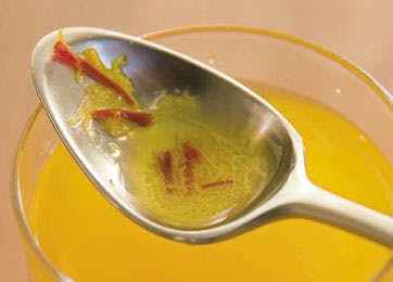 Hæld ingefær, safran og honning i et glas. Hæld kogende vand på og vent 6-8 min. Rør rundt, og lad fyldet falde til bunds, før teen nydes.