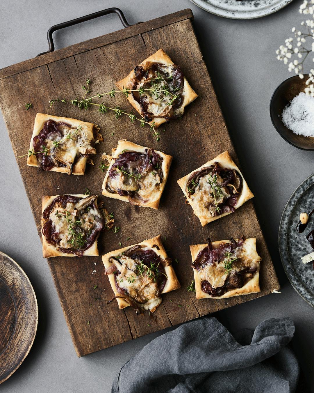Servér disse små minitærter af butterdej med karamelliserede løg. De smager fantastisk og nemme at lave og du kan lune dem lige inden servering. Få opskriften her!