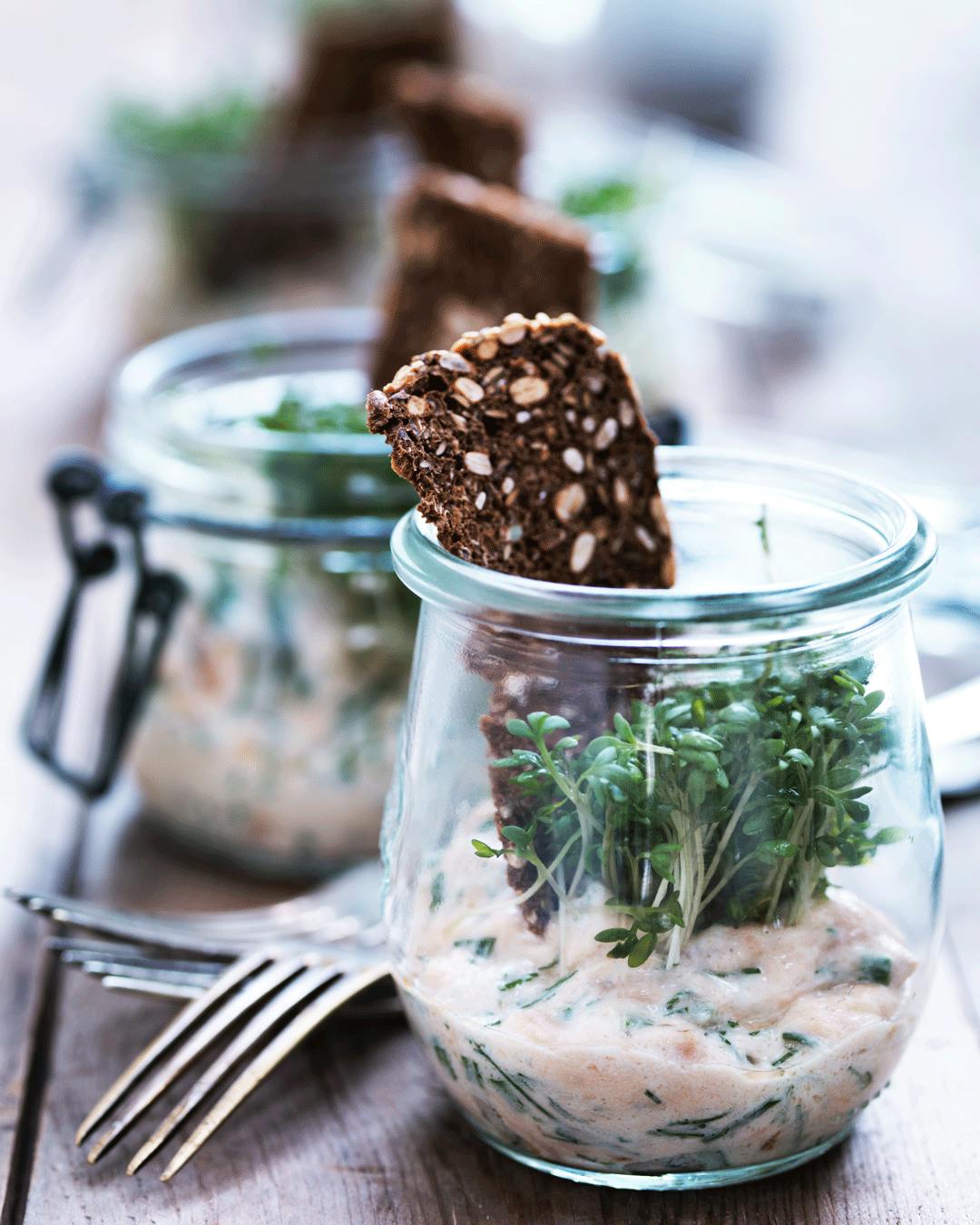 Prøv denne lakserillettes med rygeost som krydderi. Den smager fantastisk og kan sagtens laves dagen før! Få opskriften her! (link fjernet)