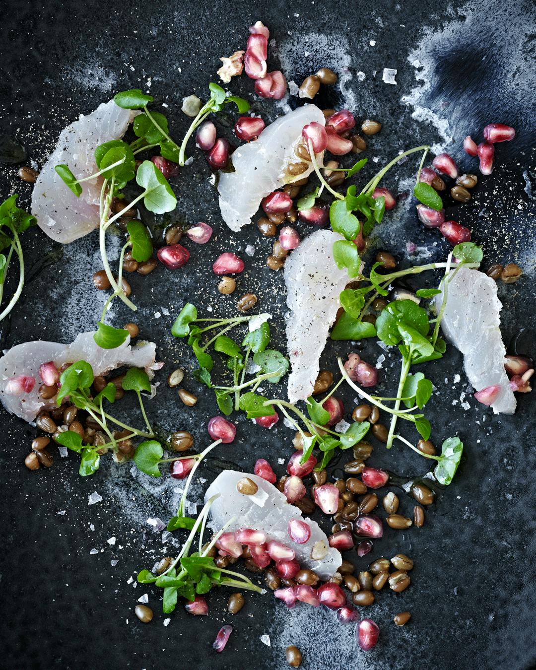 Torsken skal salte på køl i mindst 12 timer inden, den skal serveres, så den kan du nemt lave dagen forinden. Speltkernerne kan også laves og marineres. Det efterlader stort set kun anretningen med friske granatæblekerner. Opskrift på denne forret der kan laves dagen før her!