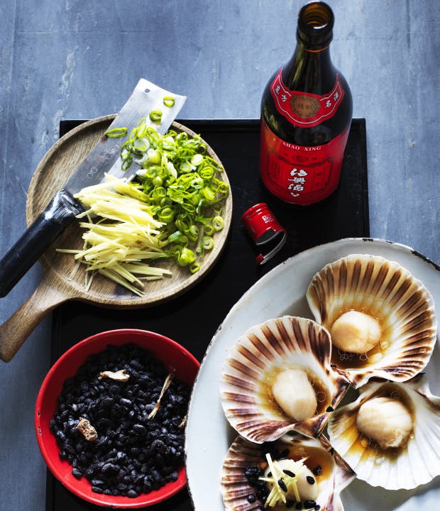 TIP! Retten kan også laves i dampovn eller dampkurve. Saltede sorte sojabønner fås som sort sojabønnepasta eller som hele bønner saltet med ingefær. Bestil gerne kammuslingeskaller hos din fiskehandler.