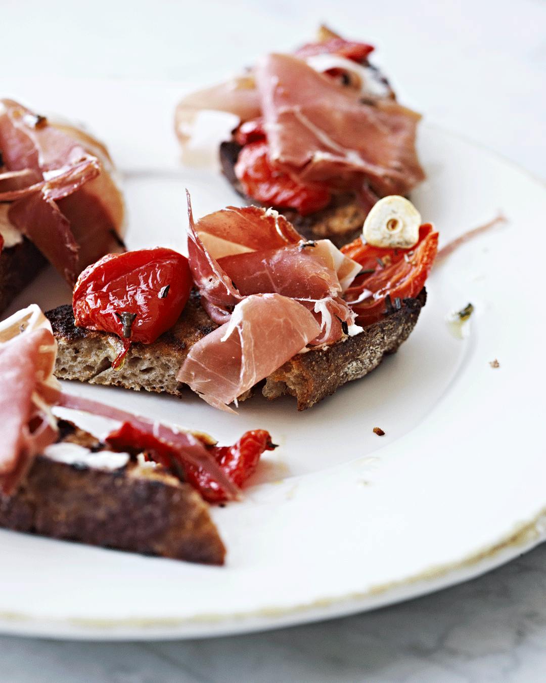 Lav en let forret af tørrede tomater på grillet brød med friskost og skinke. Få opskriften her! (link fjernet)