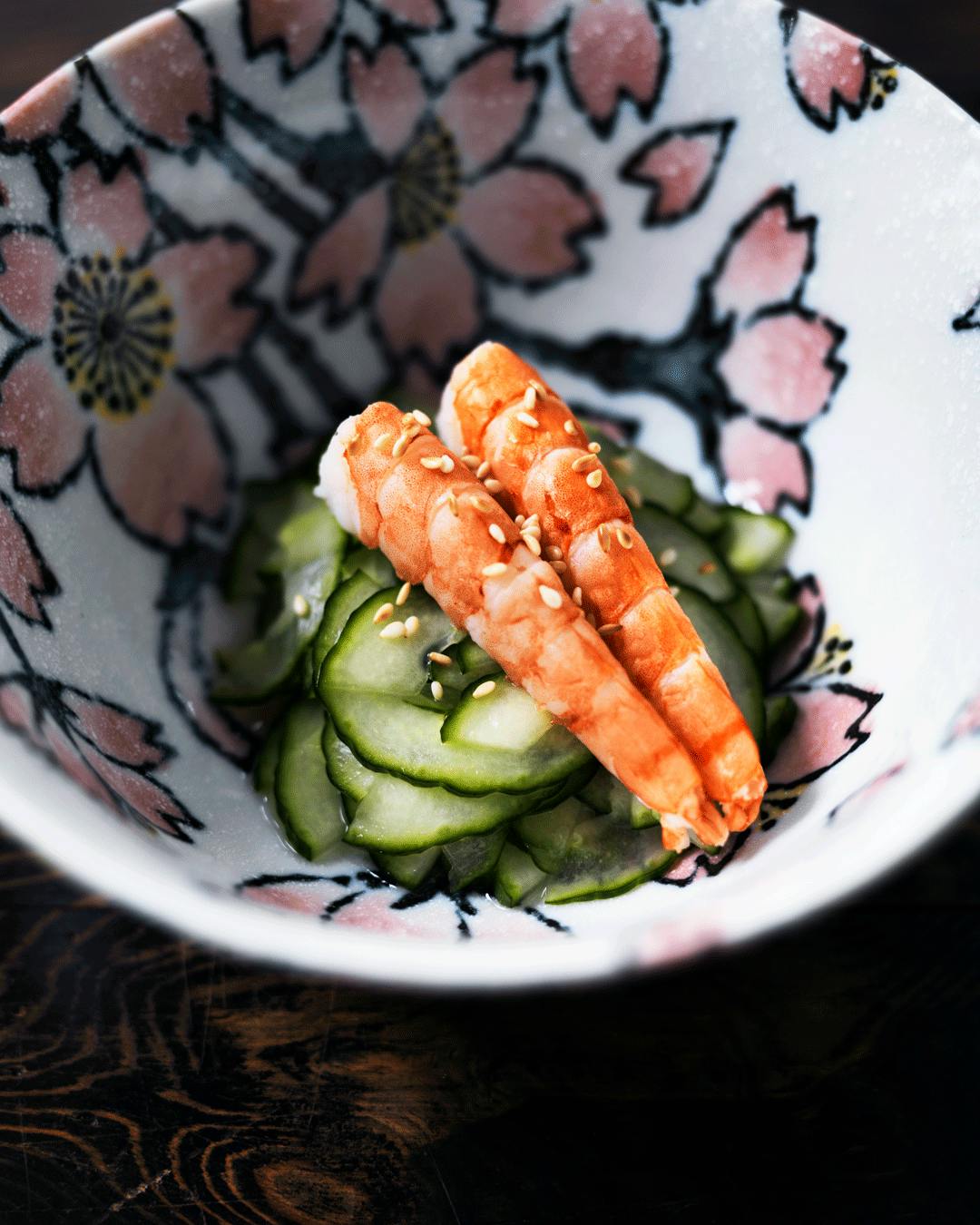 Server en mirakuløs forret bestående af lækre tigerrejer med en forfriskende agurkesalat. En lækker start på en god japansk middag. Få opskriften her! (link fjernet)