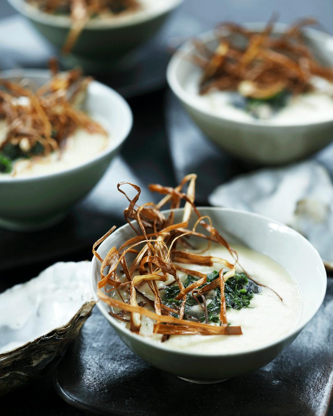 Velouté er det franske navn for denne lækre suppe med pocherede østers og er den perfekte forret til middagsselskabet. Få opskriften her! (link fjernet)