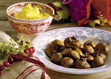 Kastanjer er modne i oktober. I stedet for at prikke hul i dem, så bag dem i ovnen og spis dem som forret.