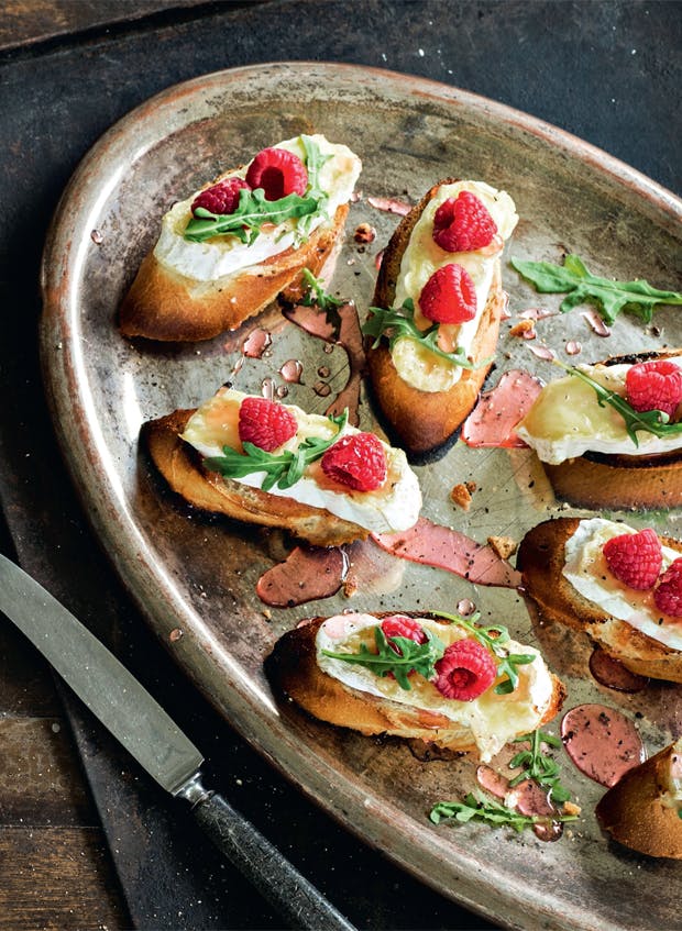 Nordisk sommer og italiensk klassiker bliver forenet på fantastisk vis i denne lækre bruschetta med både rabarber og friske hindbær - der kan varieres i det uendelige efter smag og behag. Skift fx hindbærrene ud med danske jordbær, eller brug gorgonzola eller en anden blå ost i stedte for brie.