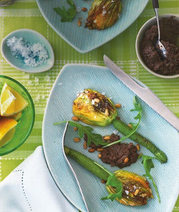 Opskrift på fyldte squashblomster med gedeost, basilikum og soltørrede tomater. Se, hvordan du gør trin for trin