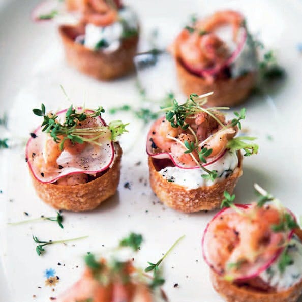 Servér lækre hapsere og småretter med fisk og skaldyr som start på den gode gæstemiddag.