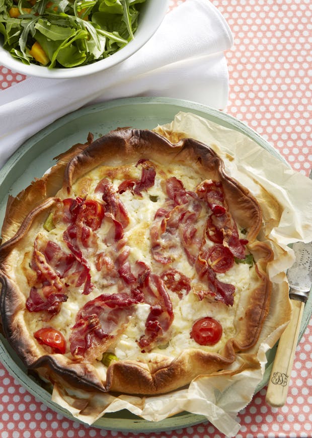 En tærte er et godt valg, når det skal gå hurtigt, men samtidig gerne må være sundt og smage godt i hverdagen. Hvis du køber en færdiglavet tærtedej i supermarkedet, kan du hurtigt lave en god og mættende tærte, som alle i familien kan være med på. Servér den gerne med en grøn salat til.
