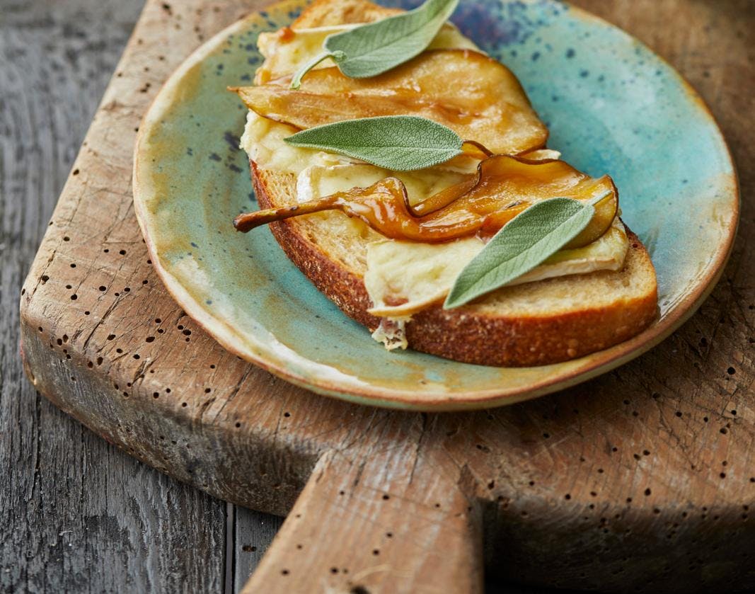 Tartines er en form for fransk smørrebrød eller åben sandwich, der kan minde lidt om italiensk bruschetta. De består af surdejsbrød med forskellig topping, og du kan servere dem til enhver lejlighed: Som tilbehør til maden, som snack eller til frokost - du bestemmer! Her får du en version med cremet brie og karamelliseret pære som topping!