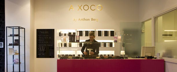 I næsten to år har Gammel Kongevej lagt adresse til butikken og chokoladeværkstedet Axoco, hvor de håndlavede chokolader præsenteres i æstetiske og nostalgisk-moderne omgivelser med lysekrone og stram farvesætning i pink, sort og hvid. Her er de store internationale chokoladehuse, som vi kender dem fra bl.a. Wittamer og chokolademesteren Pierre Marcolini i Bruxelles forbilledet, og også i sortimentet leges der dristigt, når der sættes smag på fristelserne.