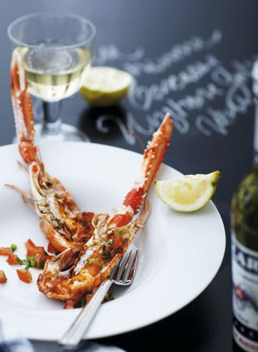 Grillet jomfruhummer i pernod og paprika med tomatconcassé og frisk koriander