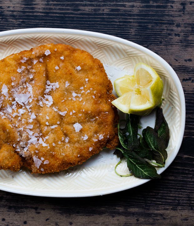 Få opskriften på restaurant FAMOs schnitzel, der bruger kalvekrone som kød. Ligesom den klassiske wienerscnitzel bliver kødet paneret og stegt til en sprød og velsmagende ret.