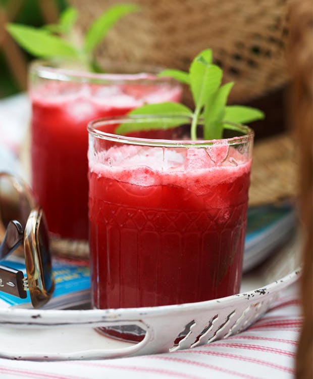 Hjemmelavet hindbærbrus er den perfekte afkøling i sommervarmen, og bringer glade barndomsminder frem til den gode sodavandsklassiker, der farvede tungen rød og smagte sødt og sommerligt.