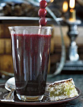 Kog i en gryde: Vand, tranebær, solbær, appelsinfileter, rødvin, stødt kanel, stødt anis, stødte nelliker, peberkorn og rørsukker. Når det når kogepunktet, skrues ned for varmen. Lad det simre i 20 min.