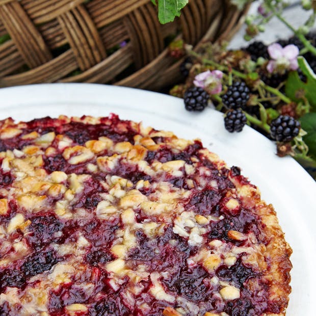 Sommerens solmodne brombær giver denne tærte en fantastisk farve og smag, så ingen kan holde øjne eller fingre fra den. Få opskriften her!