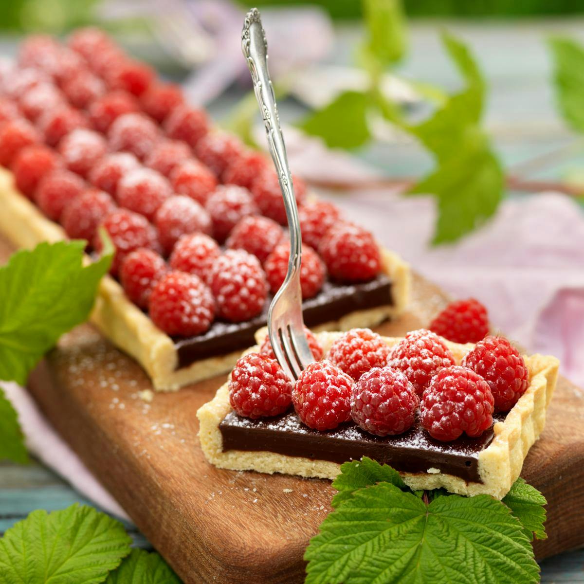 En god tærte er prikken over i’et til eftermiddags- eller aftenkaffen. Denne opskrift består af en sød forening af tærte, chokoladekaramel og hindbær.