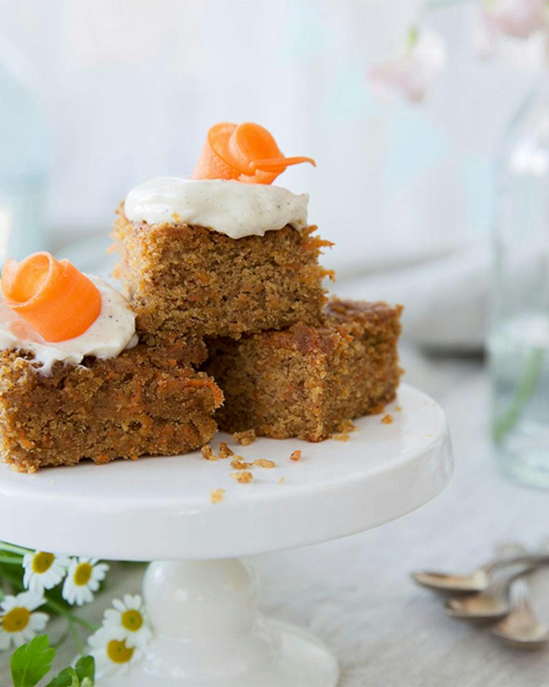 Denne gulerodskage med mandel- og majsmel har en ekstra lækker og svampet konsistens.