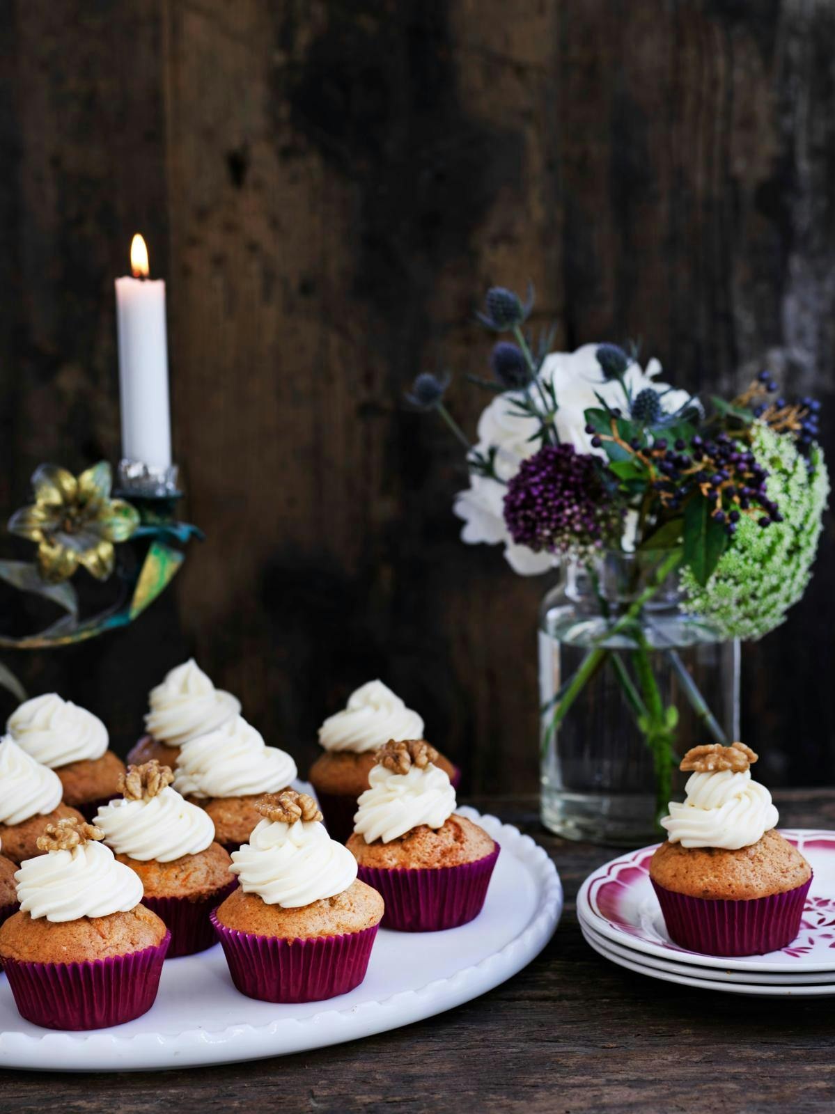 Står du med en rest gulerødder, kan de let forvandles til herlige gulerodsmuffins med cremet mascarponecreme!