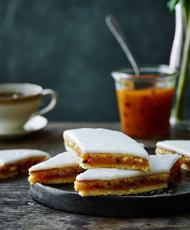 Disse æblesnitter er lavet af en sød mørdej med kokosmel og flormelis, og syltetøjet indeni smager skønt af æble, ingefær og havtorn. Mums!