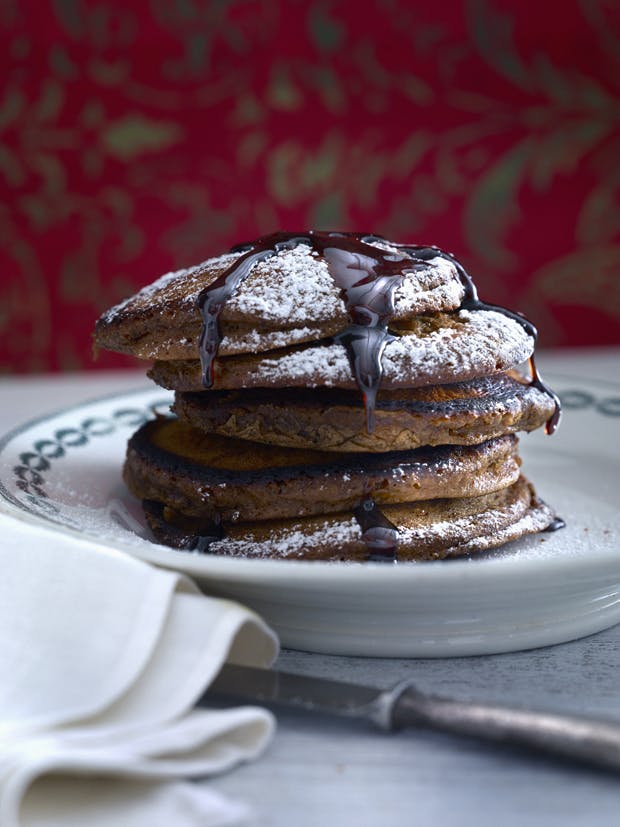 Overrask ved morgenbordet i den søde juletid med lækre pandekager, der smager af jul. Her får du opskriften på skønne brunkagepandekager.