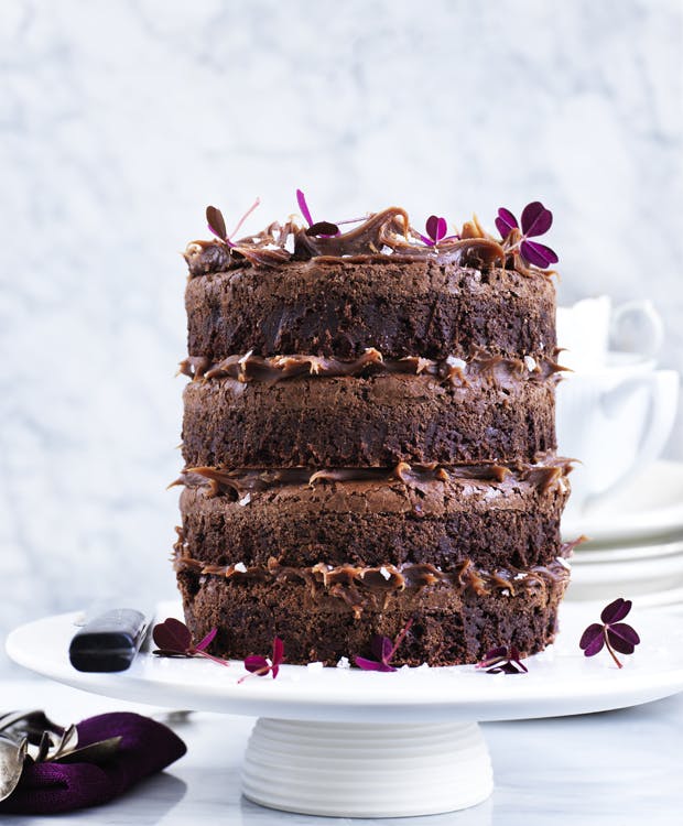 Hvis du skal imponere dine gæster, så er denne kage den helt rigtige! Den ser overdådig ud, er blød og lækker, og smagskombinationen af chokolade og saltkaramel vil tilfredsstille både dem der er mest til sødt, og dem der er mest til salt.