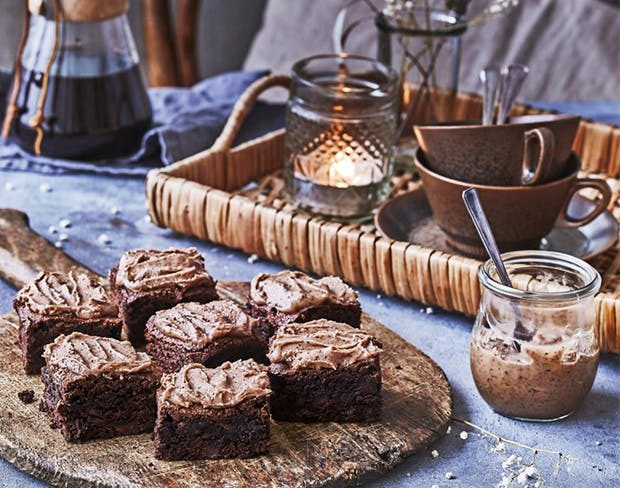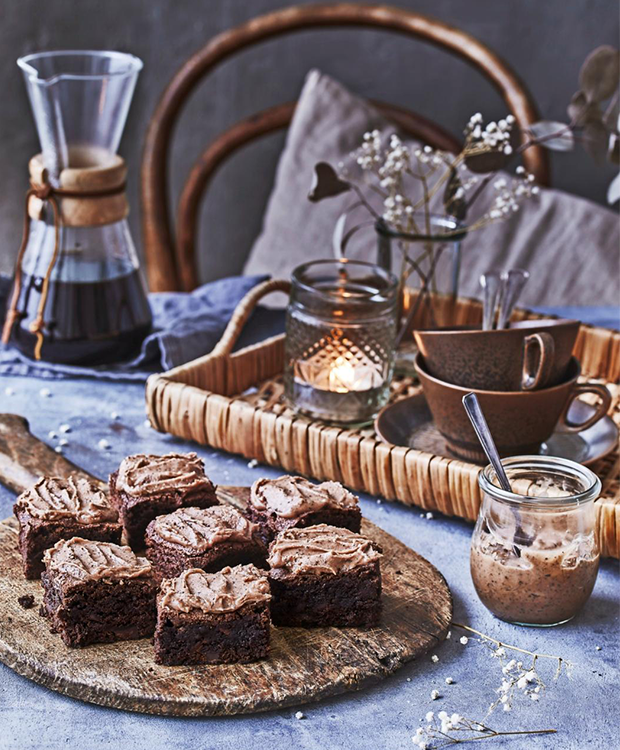 Danmark er et af de lande i verden, hvor der bliver drukket mest kaffe. Men hvorfor nøjes med at hælde den i kop og krus, når man kan integrere den populære drik i kager og desserter? Vi forkæler dig med en brownie med kaffefrosting, der er af den chokoladegavmilde slags!