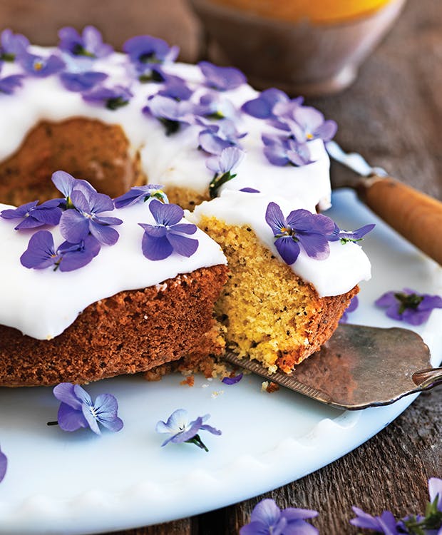 Her får du opskriften på en skøn og svampet citronkage, der, med sin syrlige glasur og de fine stedmoderblomster på toppen, både ligner og smager som en lille bid forår.