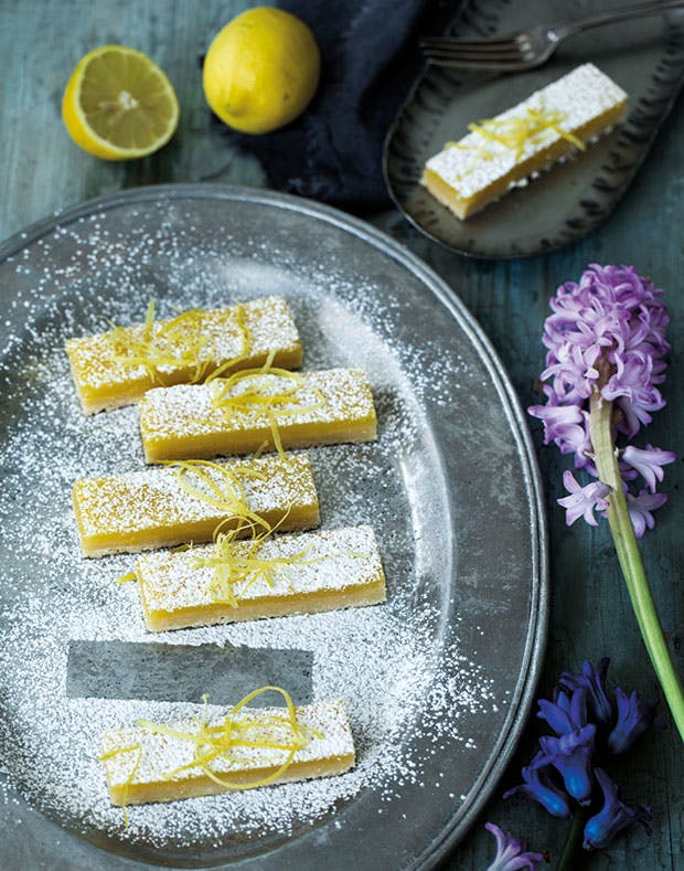 Der ér bare noget skønt ved smagskombinationen af syrlig citron og sød dej. Disse citronsnitter er utroligt friske, og er perfekte som små eftermiddags-hapsere. Ekstra lækre bliver de ovenikøbet, hvis de nydes sammen en kop earl grey-te af slagsen, der indeholder citrusfrugten "bergamot". Mmm, et sødt/syrligt og utroligt lækkert makkerpar!