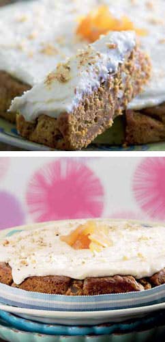 Denne opskrift på gulerodskage er blevet tilsat et eksotisk twist af syltet ingefær.