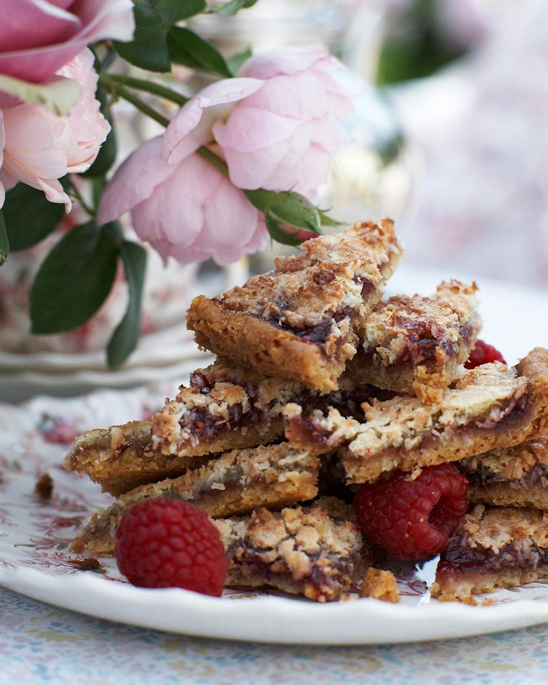 Denne opskrift på hindbærsnitter er måske lidt anderledes end de hindbærsnitter, vi kender fra bageren. Men det gør dem absolut ikke ringere. I denne opskrift er hindbærmarmeladen lavet på forhånd, men du kan selvfølgelig også bruge en hjemmelavet hindbærmarmelade.