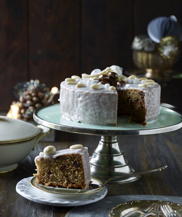 I år skal julen have hele armen! Derfor har vi ladet pebernødder og brunkager få en tiltrængt pause fra julens søde bord og erstattet dem med en snehvid krydderkage med de bedste krydderier fra julekøkkenet.