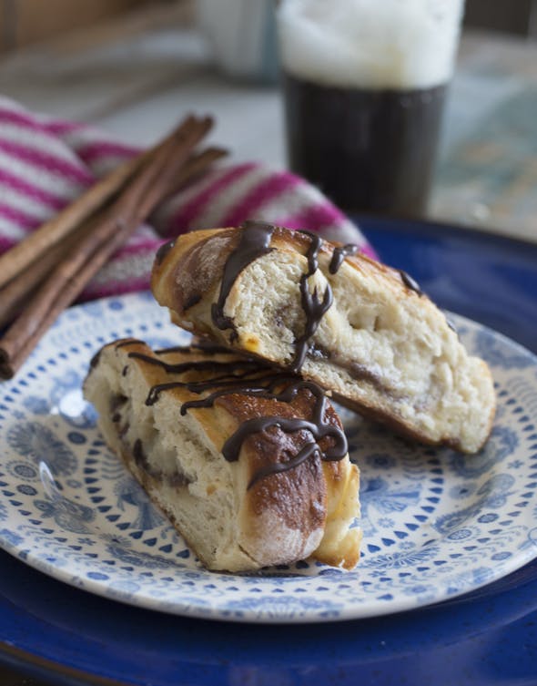 Læg din kanelstang på en bageplade med bagepapir. Gentag med det andet stykke dej, så du får 2 stænger. Lad dem hæve i 30 minutter.