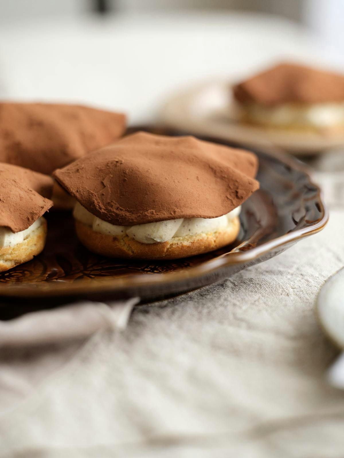Kartoffelkagen er en klassisk flødeskumskage, som du kender fra bageren. Den består af en bund af vandbakkelse med flødecreme og marcipanlåg med kakaodrys. Vi har lavet en version med sveskekompot i, som bidrager med en intens smag til den blide flødecreme. Alternativt kan du erstatte sveskekompotten med æblekompot.