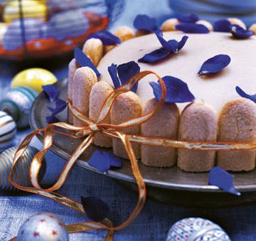 En lagkage overtrukket med marcipan er superflot og gør kagebordet lidt ekstra festligt. Denne lagkage er også pyntet med ladyfingers, men har du marcipan i overskud, kan du også pynte din lagkage med marcipanroser.