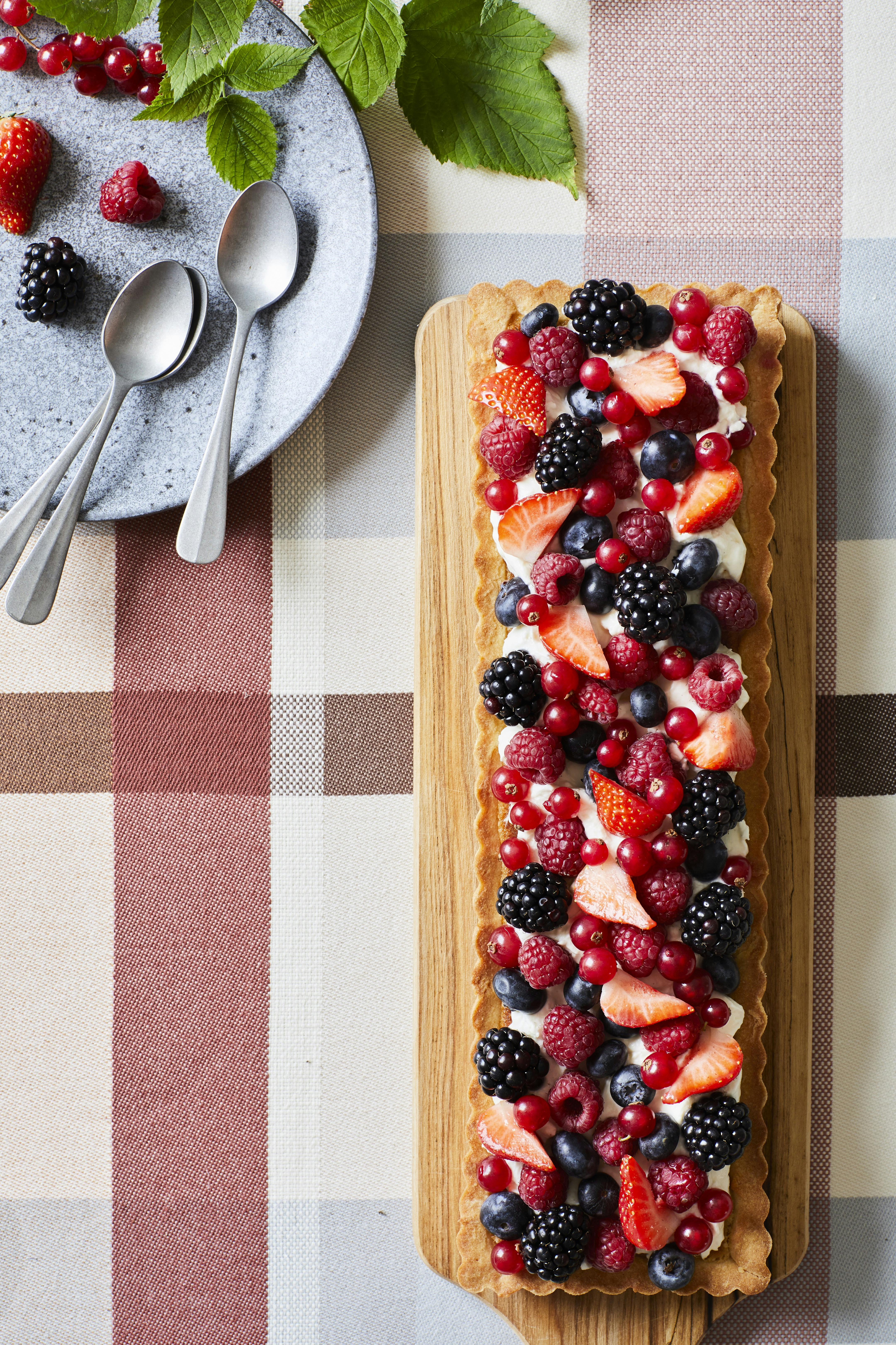 Mandeltærte med sommerbær