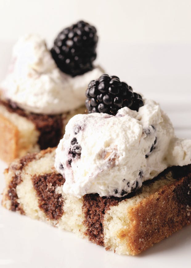 Når det kommer til kageklassikere, så ligger marmorkage helt klart i top ti. Den skønne kage er kendetegnet ved det fine mønster, der gør den så let at genkende på kagebordet. Vi giver dig her en opskrift på marmorkage, som du kan vælge at servere, sådan som du kender den, eller du kan pifte den op med lidt nyt tilbehør i form af bærflødeskum.