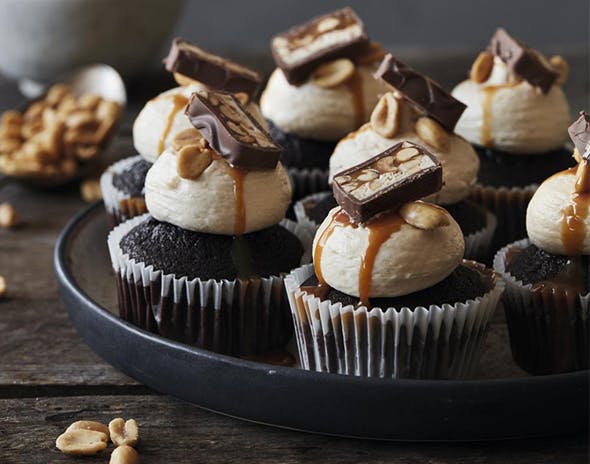 Cupcakes med snickers smager fantastisk og egner sig perfekt til en festlig lejlighed. De er ovenikøbet nemme at lave og én favorit hos både små og store. Servér de lækre cupcakes med saltet flødekaramel som smelter nemt på tungen, og giver det perfekte modspil til den søde chokolade.