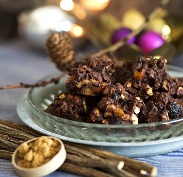 Tip! Denne konfekt kan også laves med hvid chokolade og tørrede tranebær, hvis du foretrækker en lys konfekt.