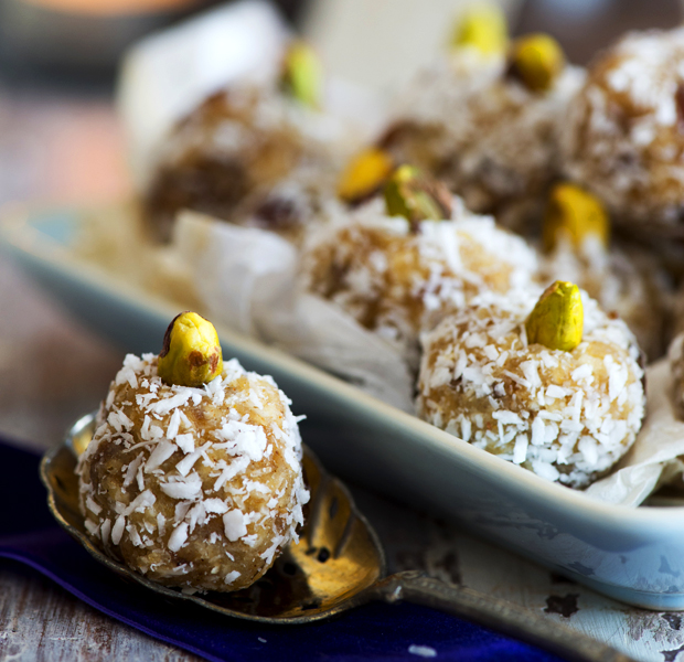 Tip! Kan du ikke få usaltede pistacienødder, kan du bruge saltede eller mandler i stedet. De kan naturligvis også helt udelades.