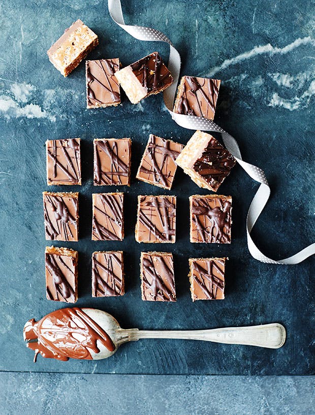 Tag formen ud af køleskabet, og lad den stå i 10 minutter, inden massen skæres ud i små firkanter.