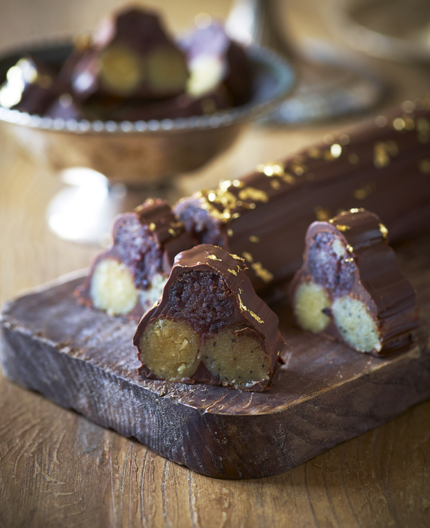December rimer på marcipantrilning og konfektsysler, og denne konfektstang i luksusudgave kan laves i tre hurtige simple trin. Så bliver det altså ikke nemmere!