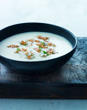 Majroesuppe med stenbiderrogn, korn og kørvel
