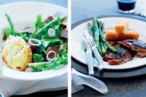 Saltimbocca med polenta-fritter og asparges