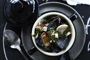 Tip Brug en muslingskal som redskab til at skrabe muslingerne ud af skallen og spise med.