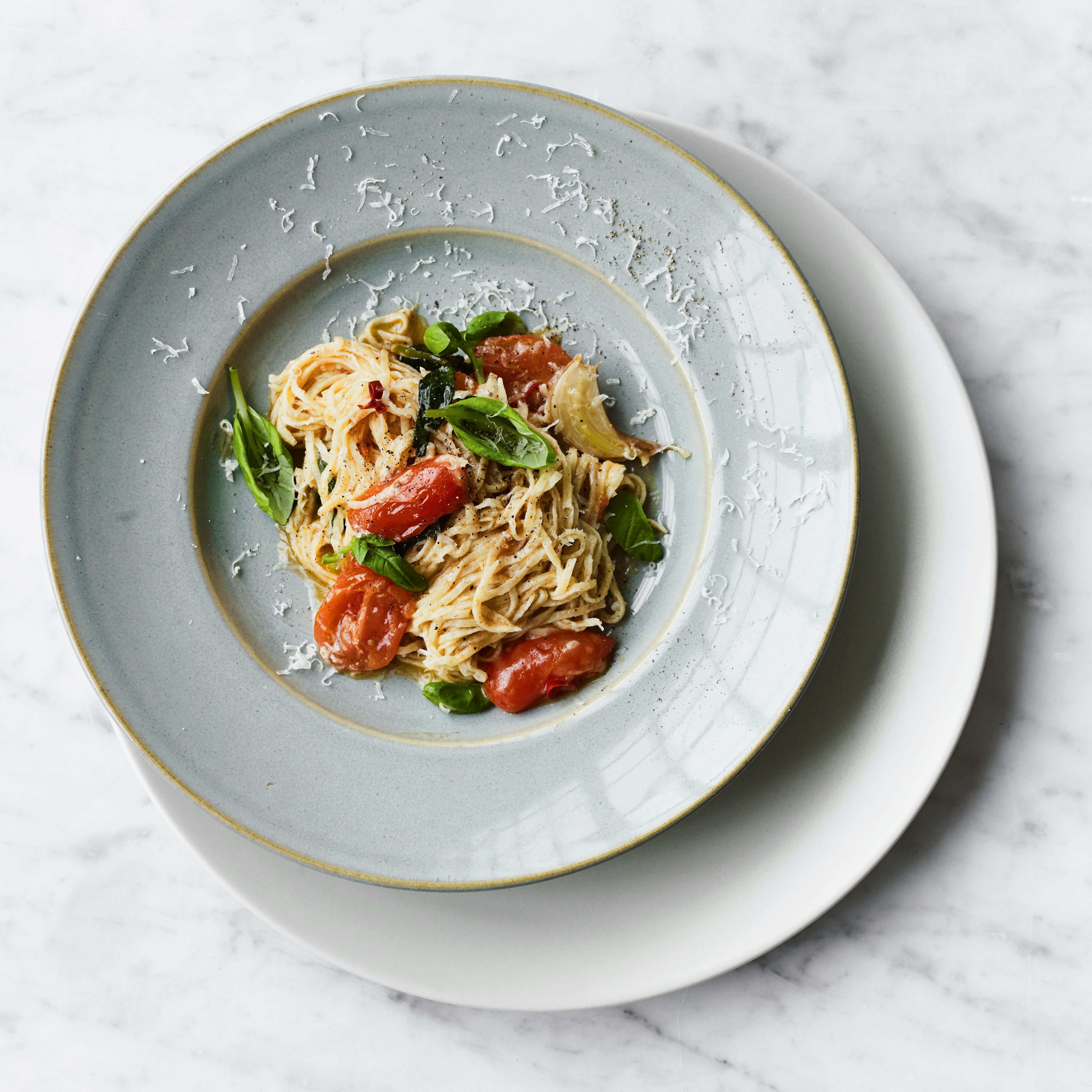 Har du lyst til at udfordre smagsløgene lidt, giver vi dig her opskriften på tagliolini med små friske tomater, stærk chili, basilikum og cremet parmesan. Tagliolini er en type pasta, der er en del tykkere end almindelig spaghetti. Tagliolini bliver skåret i lange tynde striber, som er ca 3 mm tykke, og den gør sig specielt godt i bløde og cremede fløderetter.