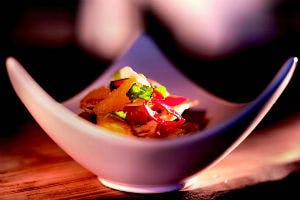 En salat med appelsin og fennikel giver et frisk modspil til den fede hovedret.