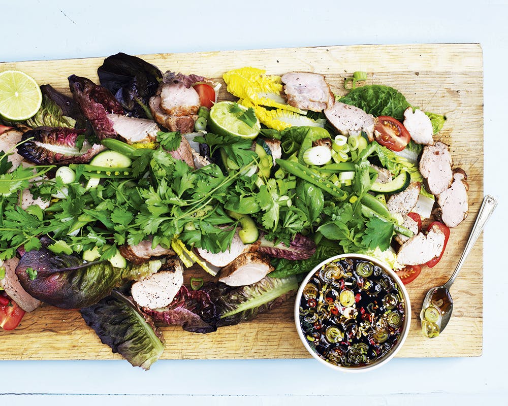 Så er det snart sommer! Det vil i hvert fald føles sådan, mens du nyder denne lækre og smagfulde salat. Anret salaten på et stort bræt, og lad alle rundt om bordet lange til og forsyne sig med det, de bedst kan lide.
