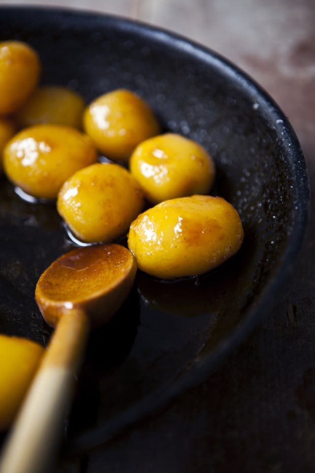 Kommer du for sent i gang med de brune kartofler, risikerer du, at de brune kartofler ikke vil tage farve, og sukkermassen gør dem mere og mere grynet at se på. Få 5 tips til at servere de perfekte brune kartofler her!