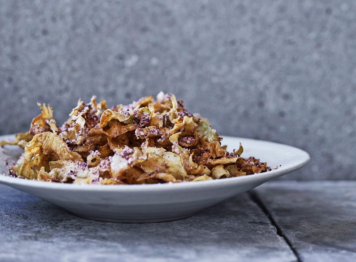 Det skal du bruge for at lave friteret artiskok med drys af tørret solbær, hasselnød og tang